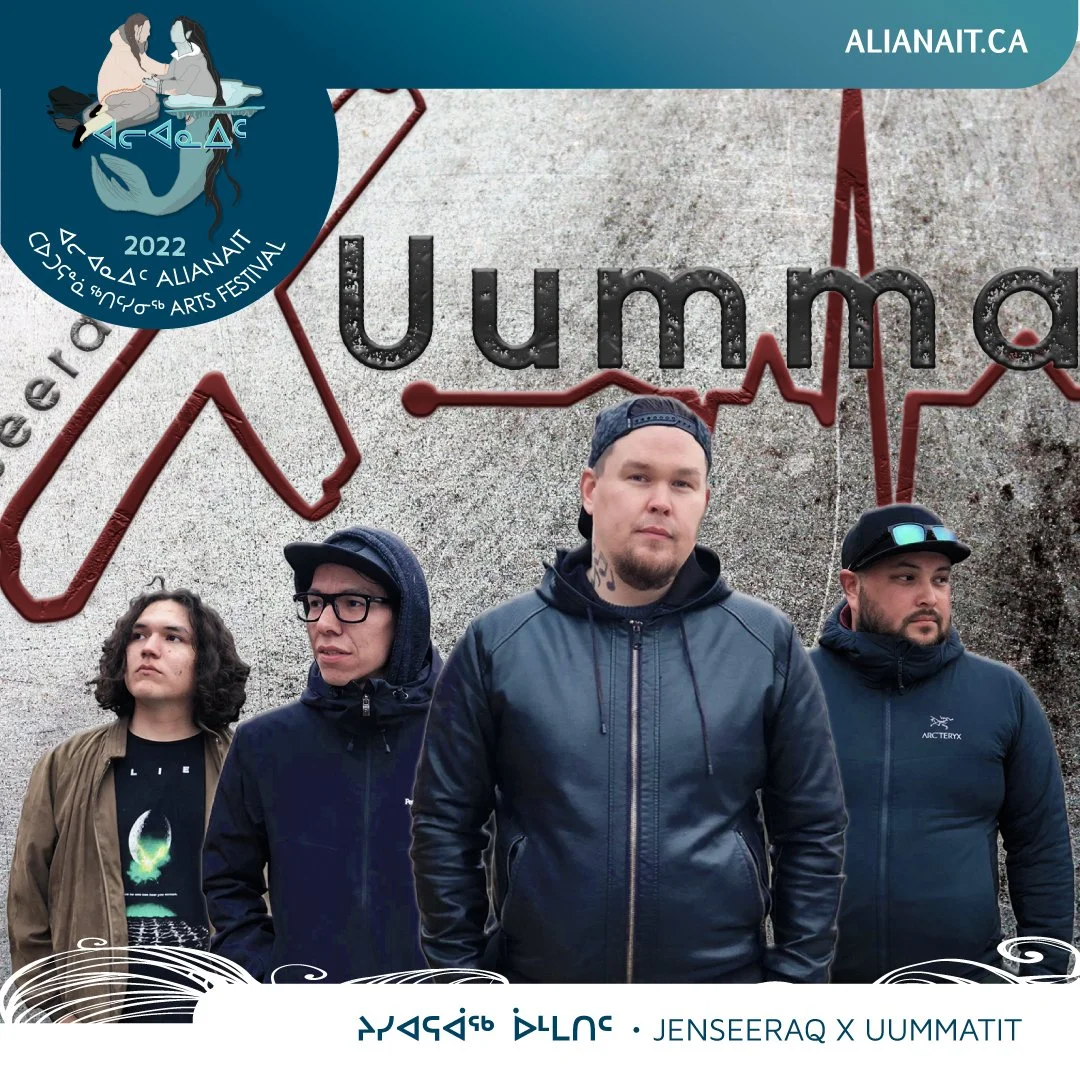 Alpha5 hit the scene in 2019 with a double win at the Qilaut songwriting competition, in 2022 they followed up with an additional hit single. They are based in Naujaat and comprise of (Dave Kaunak, Craig Nanordluk, Troy Alakkanuaq, Albert Amautinuar, Joshua Nanorak). They write and record original songs and their appearance on the Alianait stage has been awaited since 2020.